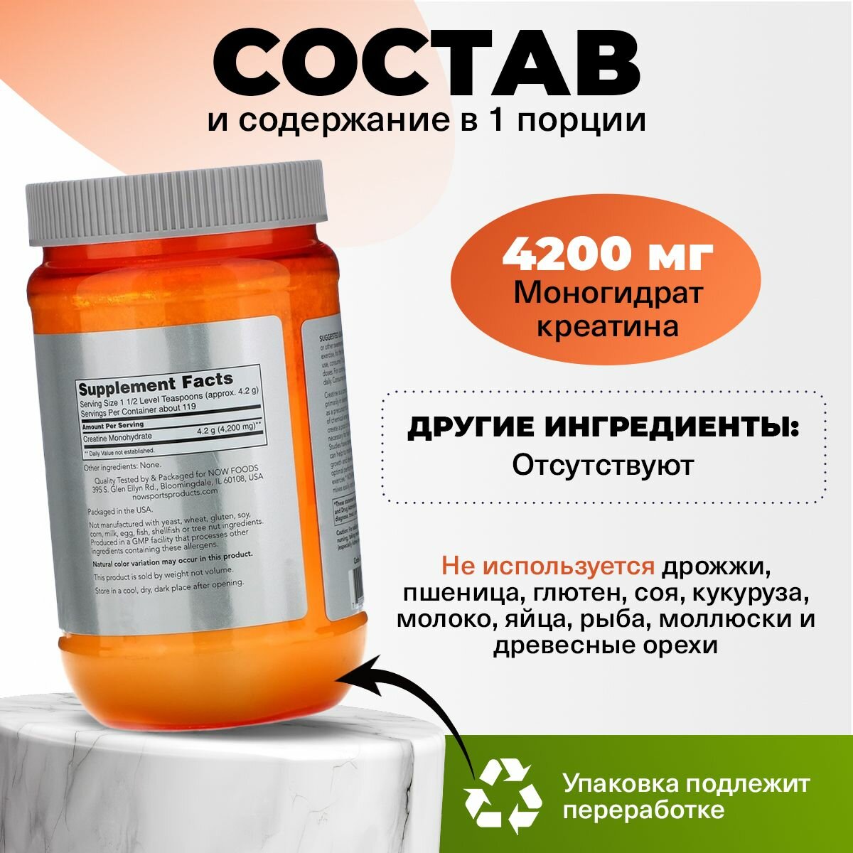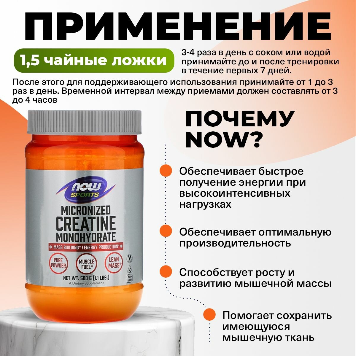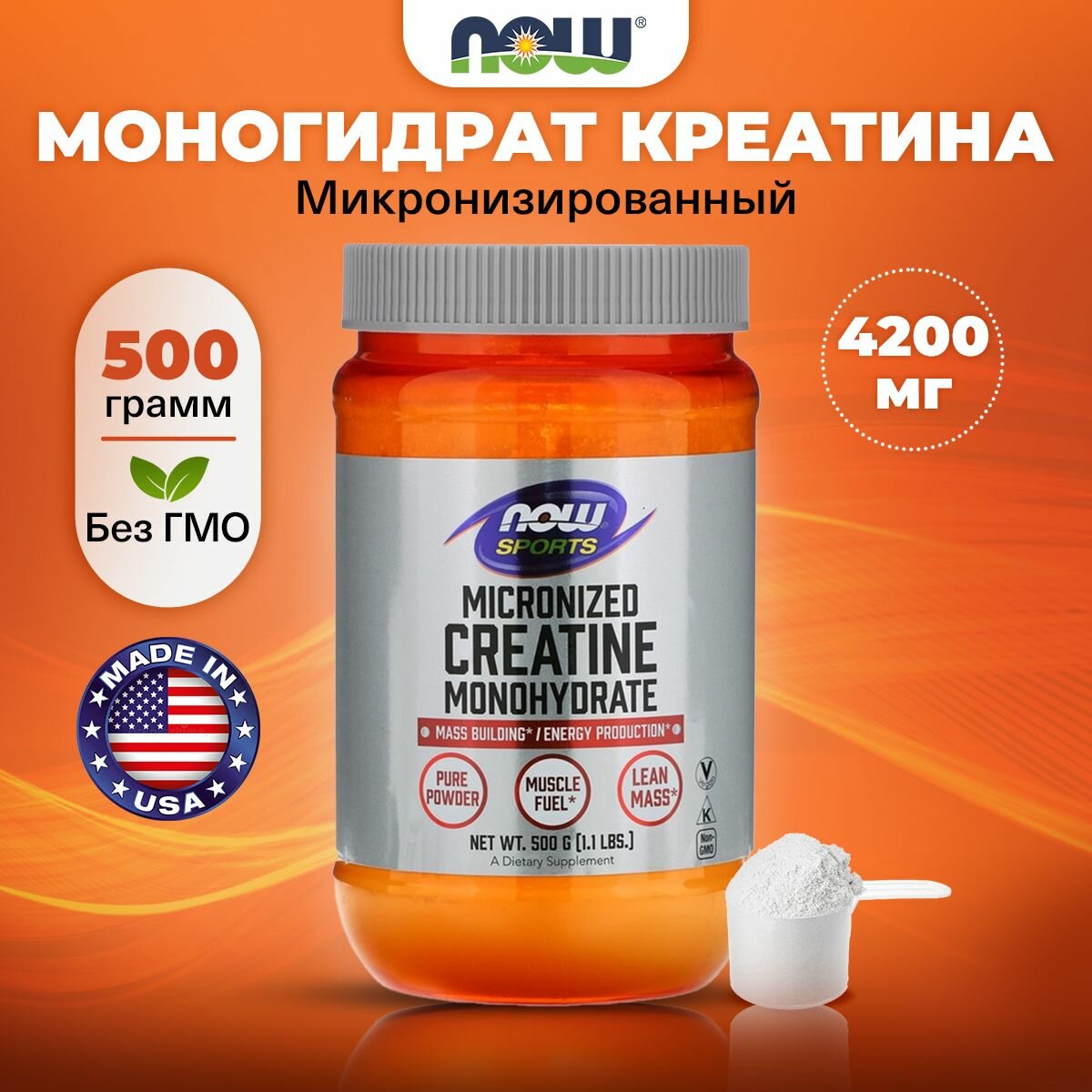 NOW Sports Creatine Monohydrate Micronized 500 г в порошке интересное: