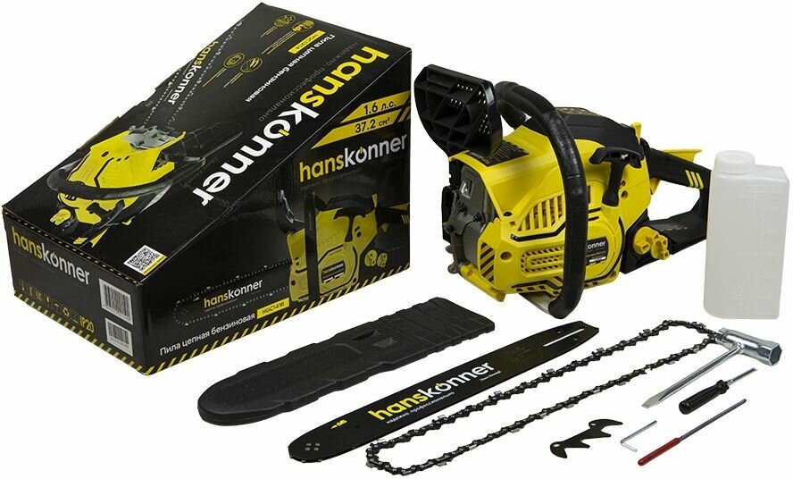Бензопила Hanskonner HGC1618 (1.6 кВт/2.4 лс, 45 см3, 3200об/мин, шина 16", 6,65кг)