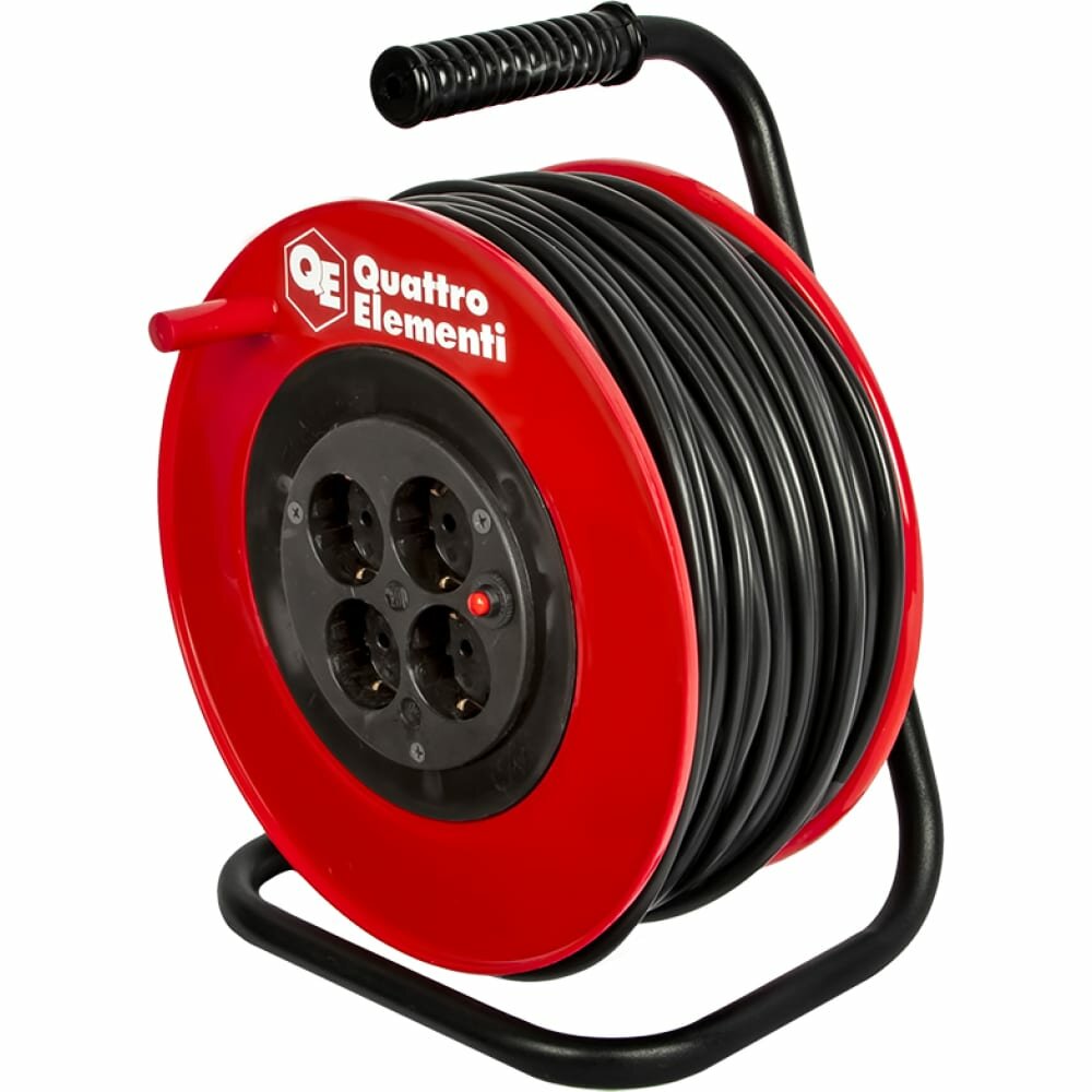 Удлинитель силовой УС-4 50 метров, провод ПВС 3х1,5 мм2, 4 розетки, катушка пластик (УС-4-50), шт Quattro elementi