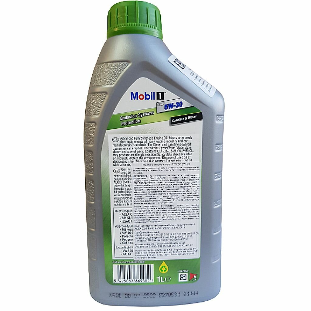 Синтетическое моторное масло MOBIL 1 ESP 5W-30, 1 л, 0.912 кг, 1 шт
