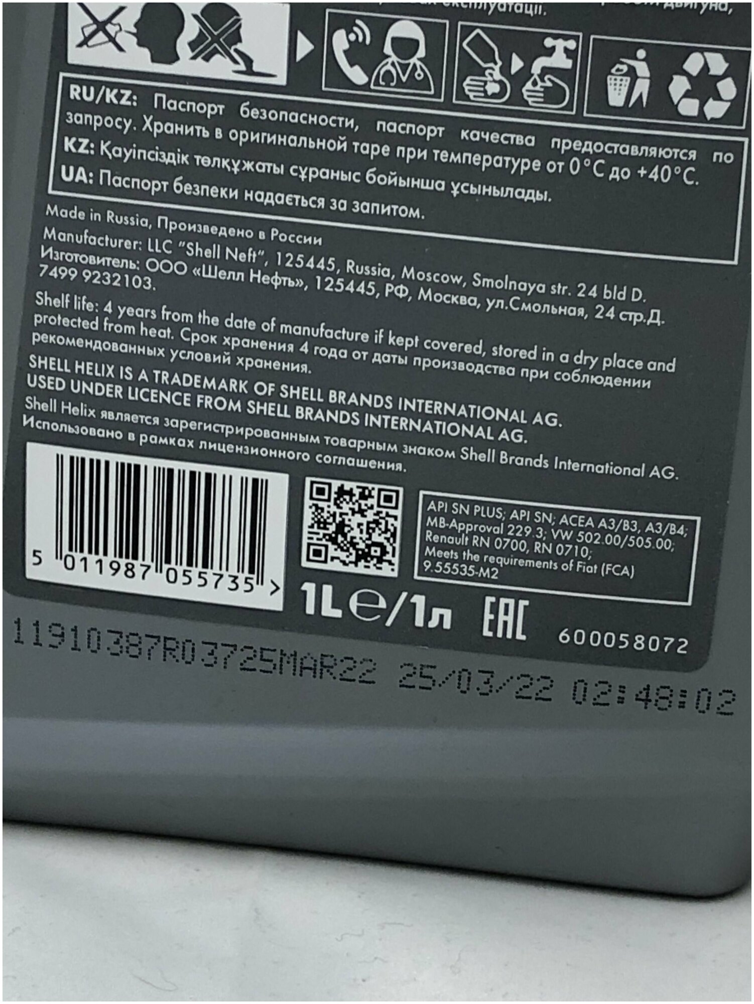 Масло 5w40 Shell Helix Hx8 Синт. 550051580 (1л.) (Sn/Sn+/Cf; A3/B3/B4) (550046368/550040295/5500515) Api: Sn/Sn+/Cf // Acea: ...