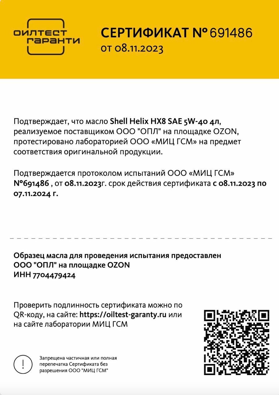 Масло 5w40 Shell Helix Hx8 Синт. 550051580 (1л.) (Sn/Sn+/Cf; A3/B3/B4) (550046368/550040295/5500515) Api: Sn/Sn+/Cf // Acea: ...