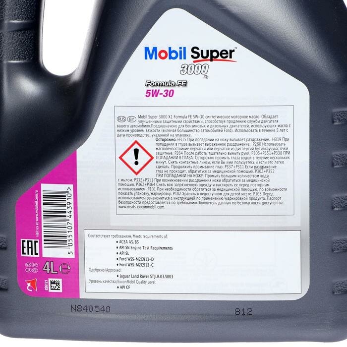 Синтетическое моторное масло MOBIL Super 3000 X1 Formula FE 5W-30, 4 л, 3.8 кг, 1 шт