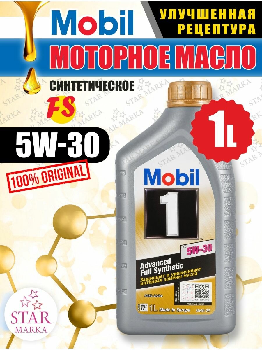 Масло моторное Mobil 1 FS 5w30 синтетическое, SN, ACEA A3/B3/B4, для бензинового двигателя, 1л, арт. 153749