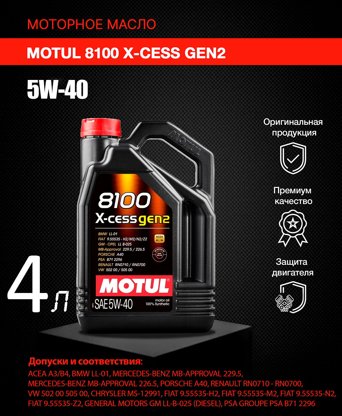 Синтетическое моторное масло Motul 8100 X-cess GEN2 5W40, 4 л, 1 шт