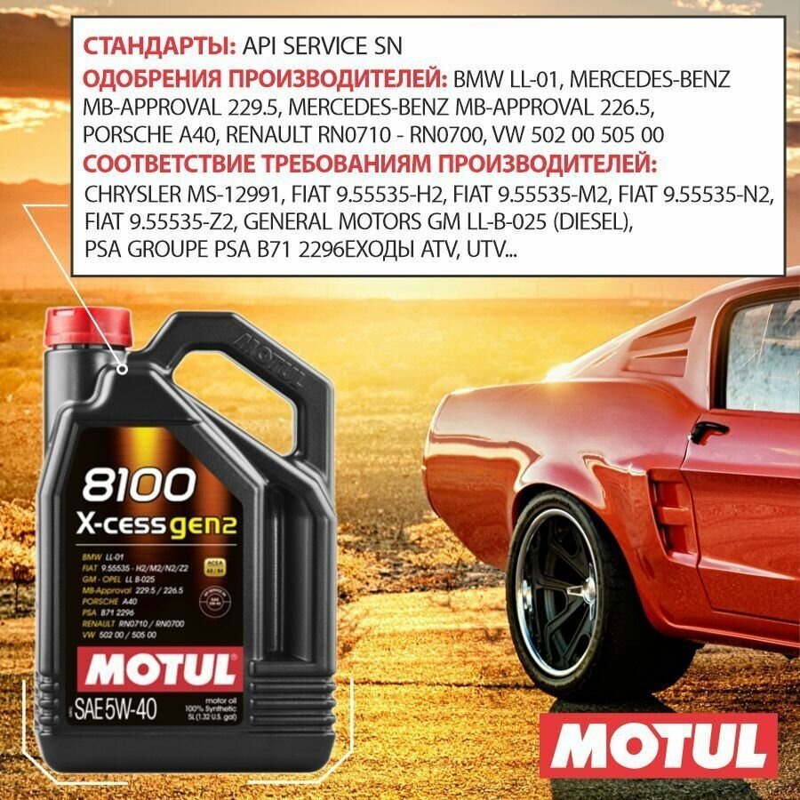 Синтетическое моторное масло Motul 8100 X-cess GEN2 5W40, 5 л, 1 шт