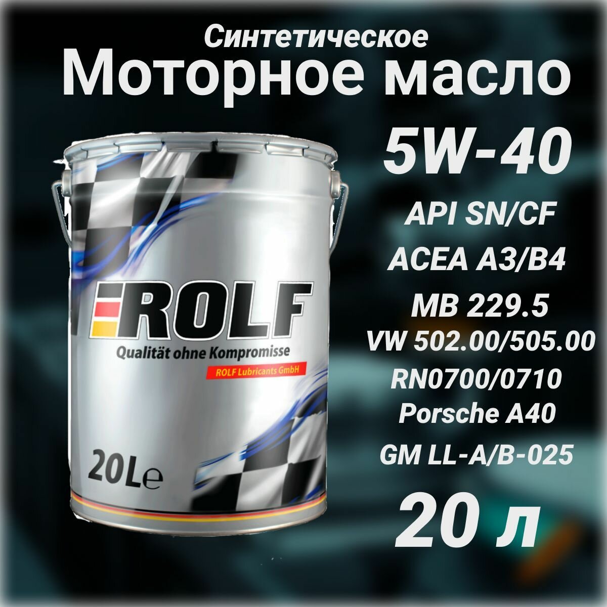 ROLF GT SAE 5W-40 SN/CF (20л) М API SN/CF;VW 502.00/505.00; ACEA A3/B4-16;RN 0700/0710