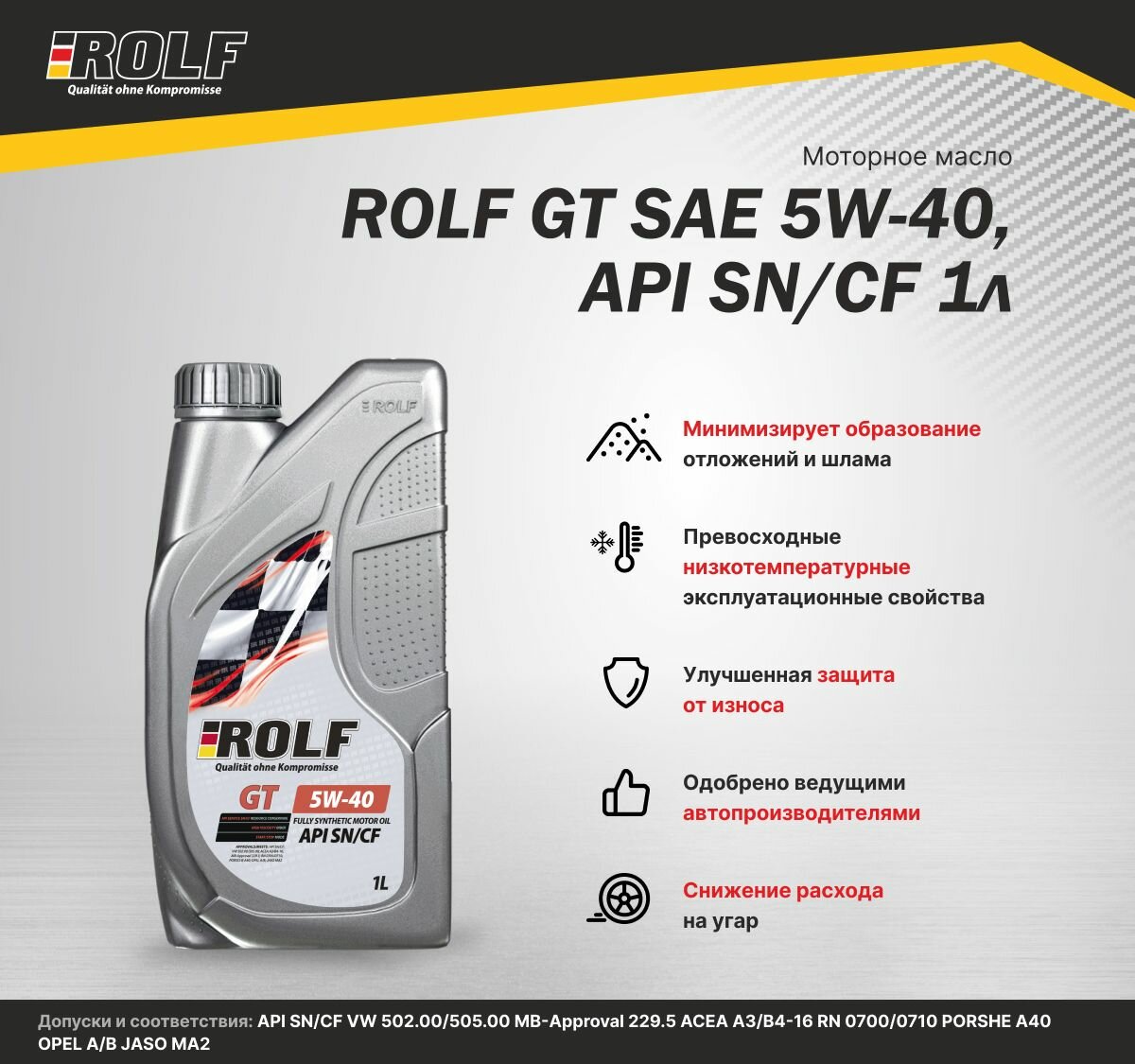 ROLF GT SAE 5W-40 SN/CF (20л) М API SN/CF;VW 502.00/505.00; ACEA A3/B4-16;RN 0700/0710