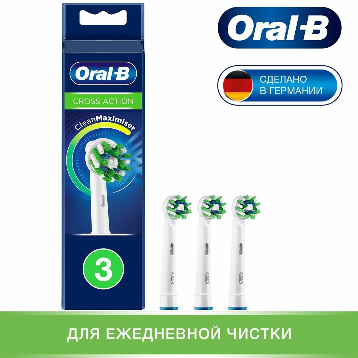 Сменные насадки для электрической щетки Oral-B Cross Action CleanMaximiser, белый, 3 шт. (оригинал, Германия)