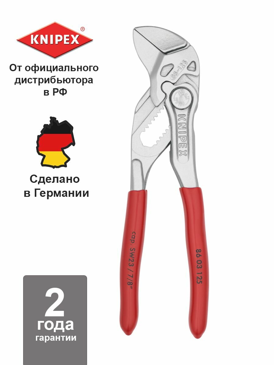 Клещи переставные-гаечный ключ, зев 23 мм, длина 125 мм, хром, обливные ручки KNIPEX KN-8603125