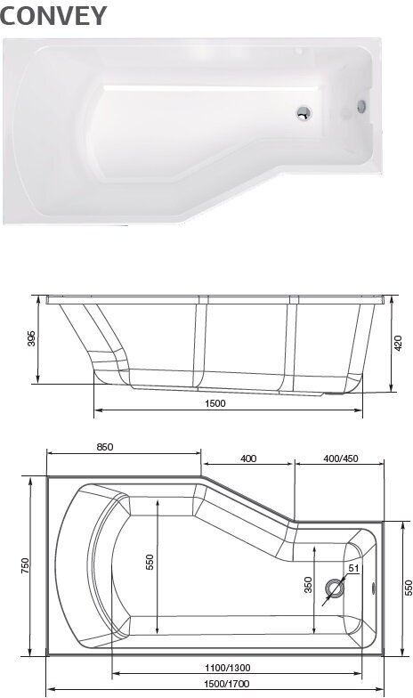 СохранитьВанна акриловая 170x75 см асимметричная правый угол Marka One Convey 01кон1775п интересное: