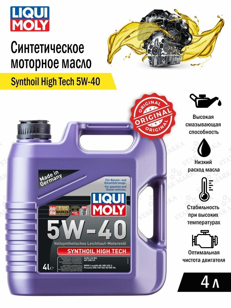 Liqui moly synthoil high tech 5w40 sm-cf a3-b4 4л (1915)