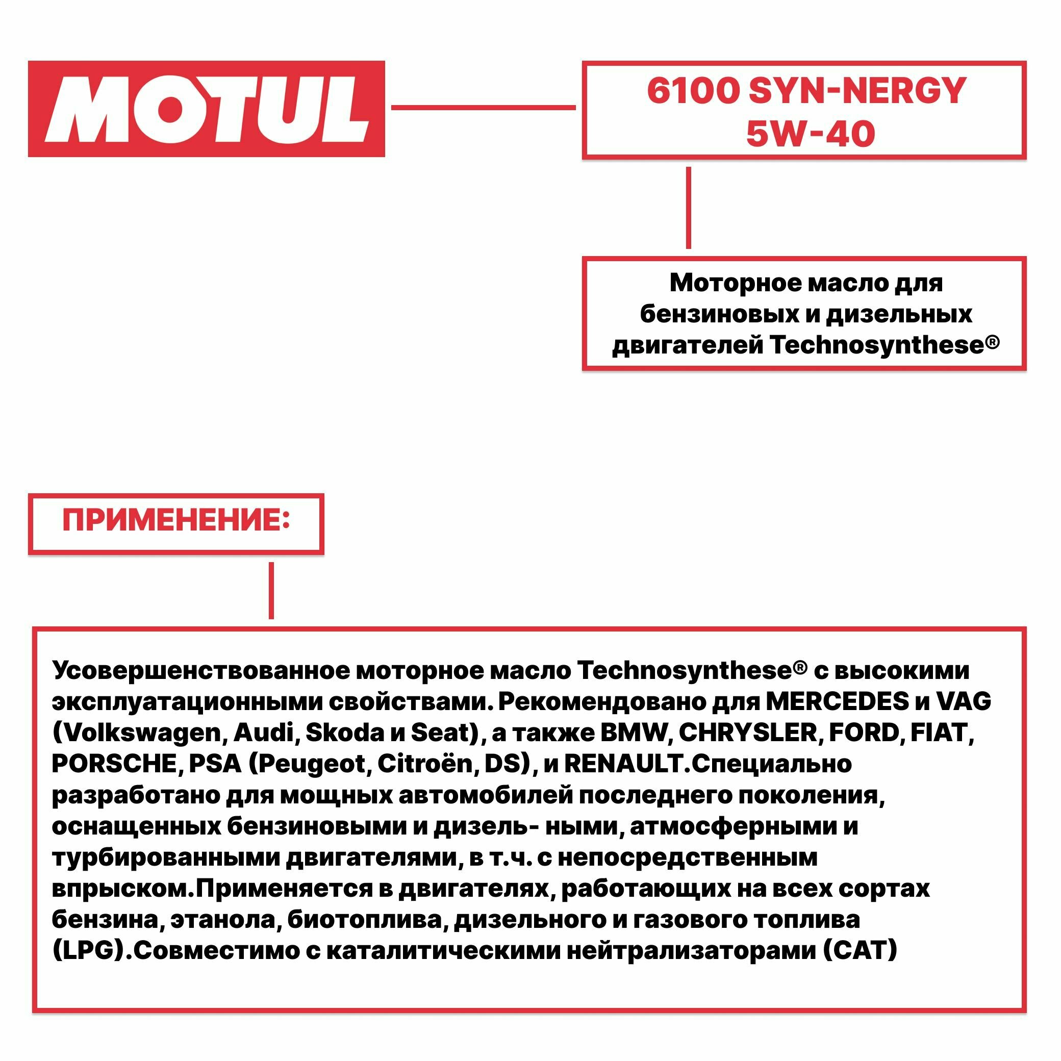 Моторное масло MOTUL 6100 SYN-NERGY, 5W-40, 1л