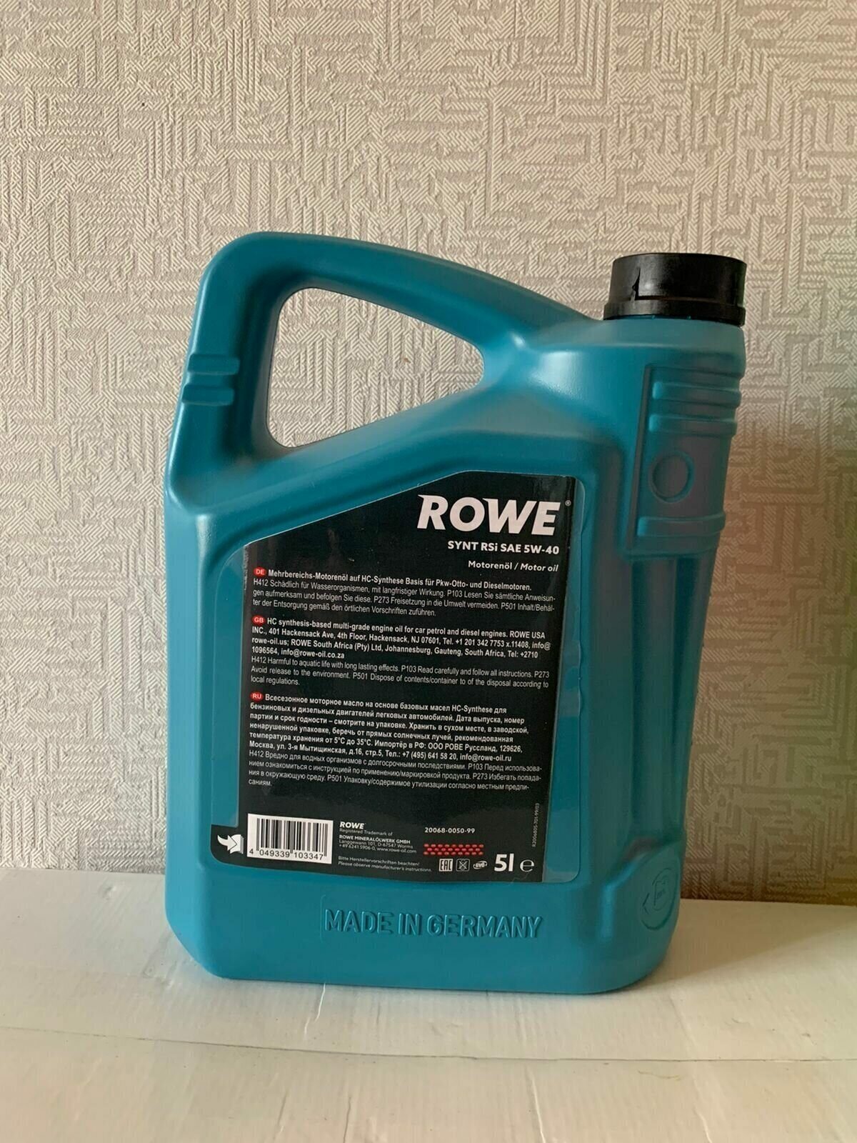 Синтетическое моторное масло ROWE Hightec Synt RSi SAE 5W-40, 5 л