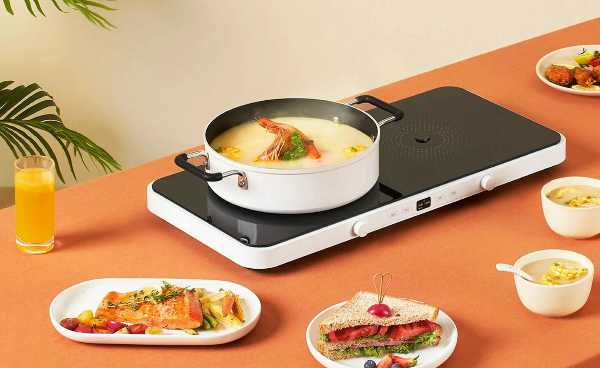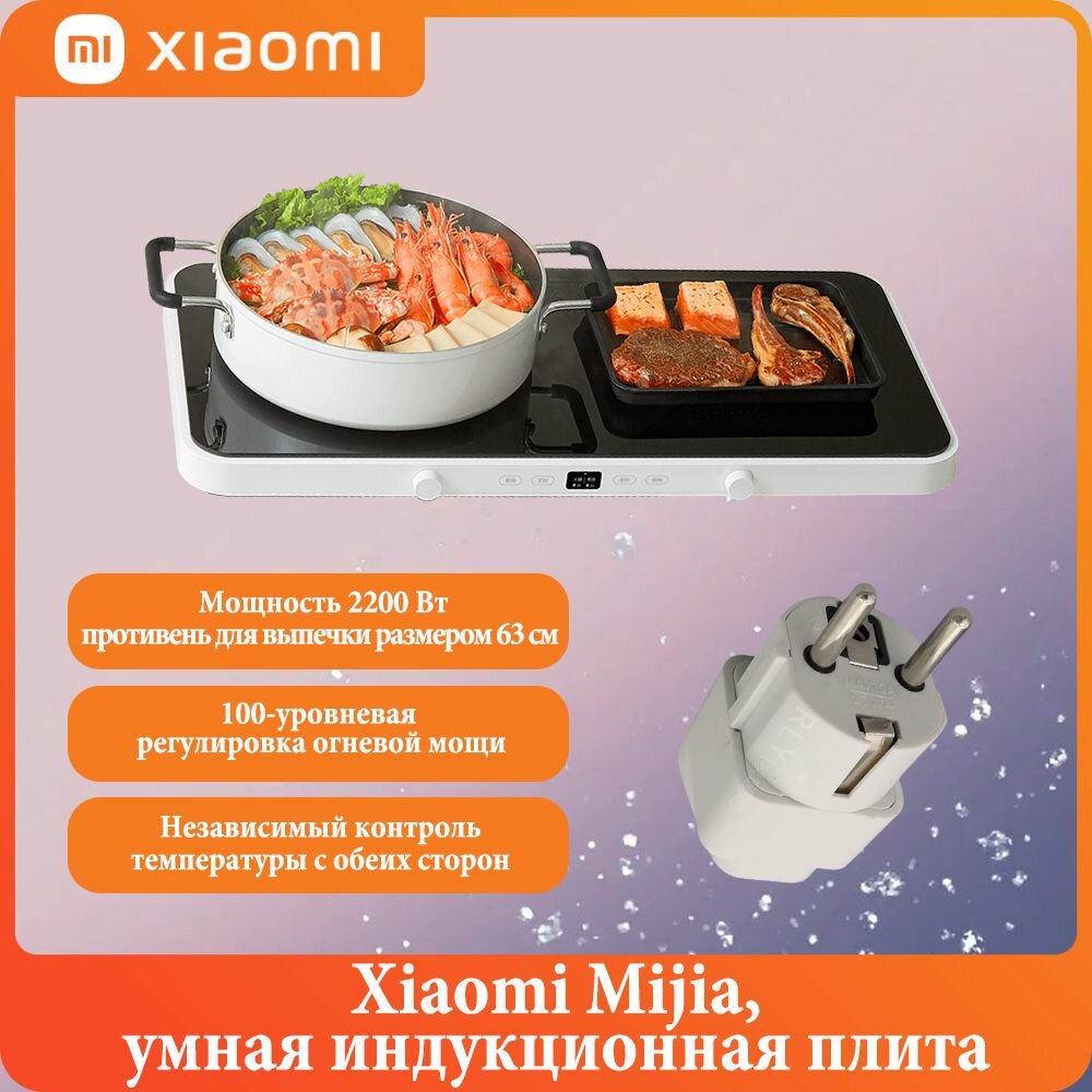 Купить Xiaomi Mijia, интеллектуальная индукционная плита, независимая регулировка температуры с обеих сторон, мощность 2200 Вт, белый, китайская версия