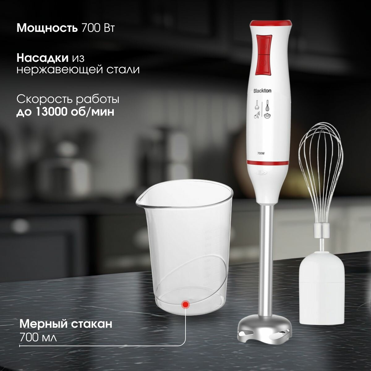 Блендер погружной BLACKTON Bt HB721SS White-Red / блендер для смузи / блендер для коктейлей