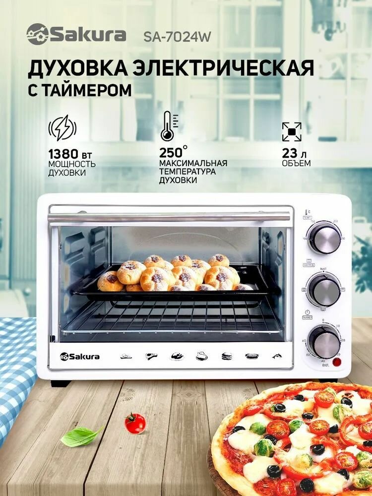 Купить Мини-печь SAKURA SA-7024W 23 л, 1380 Вт, белый