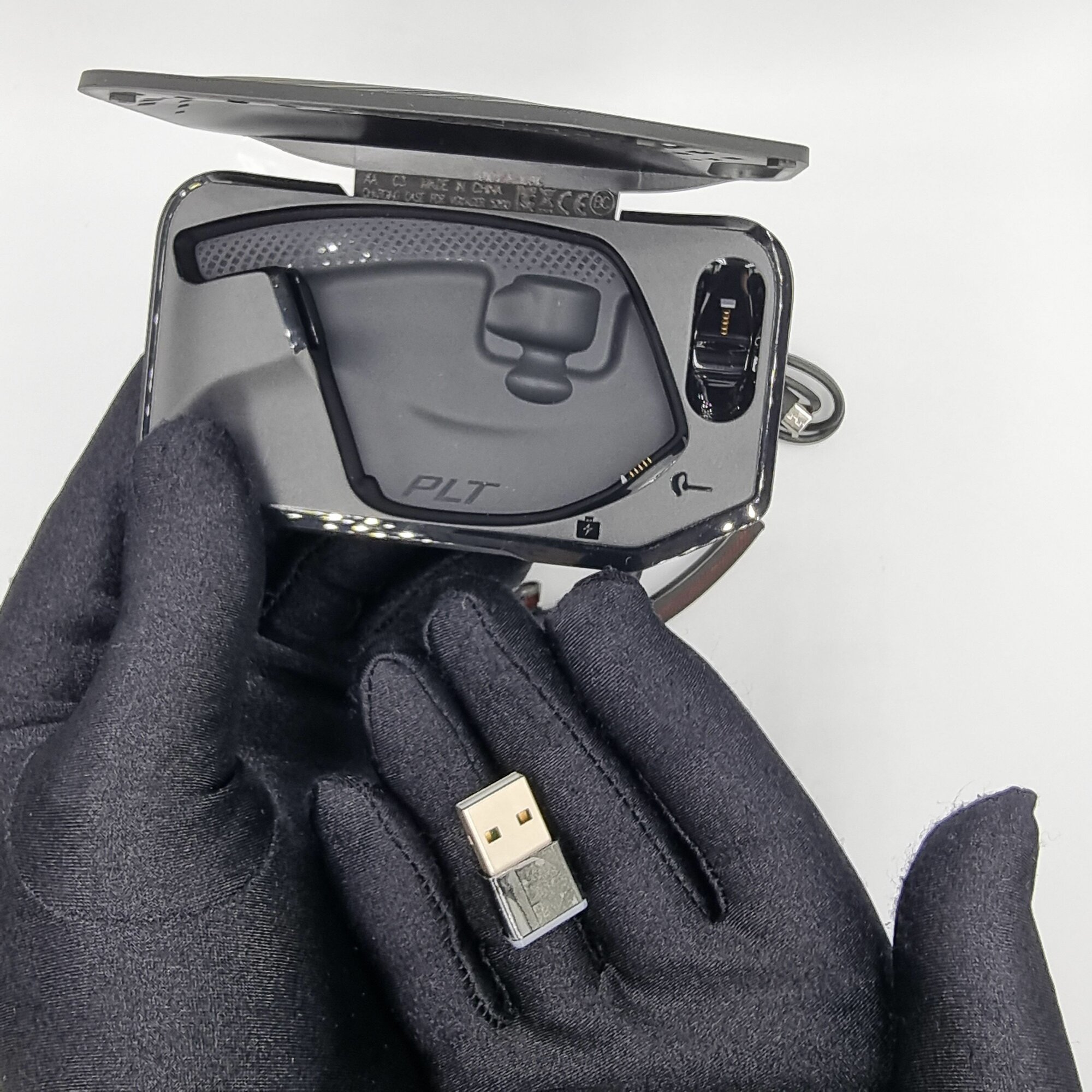 Устройство еще с логотипом плантроникс на одной стороне, но выпущена зимой 2022 года, то есть свежая партия. |