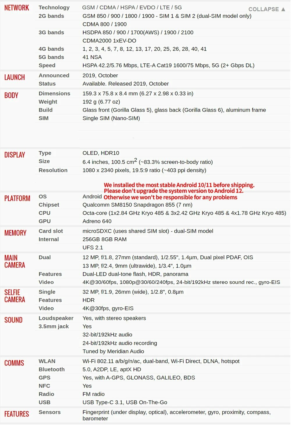 | Процессор | Qualcomm Snapdragon 855 |
