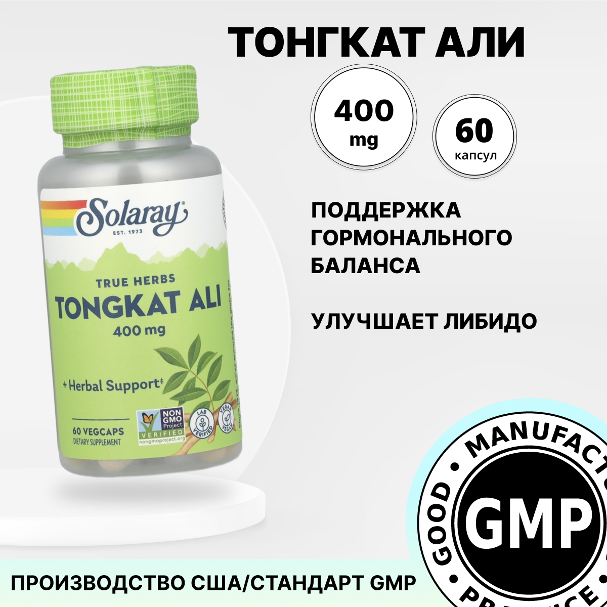 Solaray - Tongkat Ali 400 мг (60 капсул) - Тонгкат Али для повышения выработки тестостерона и либидо у мужчин и женщин