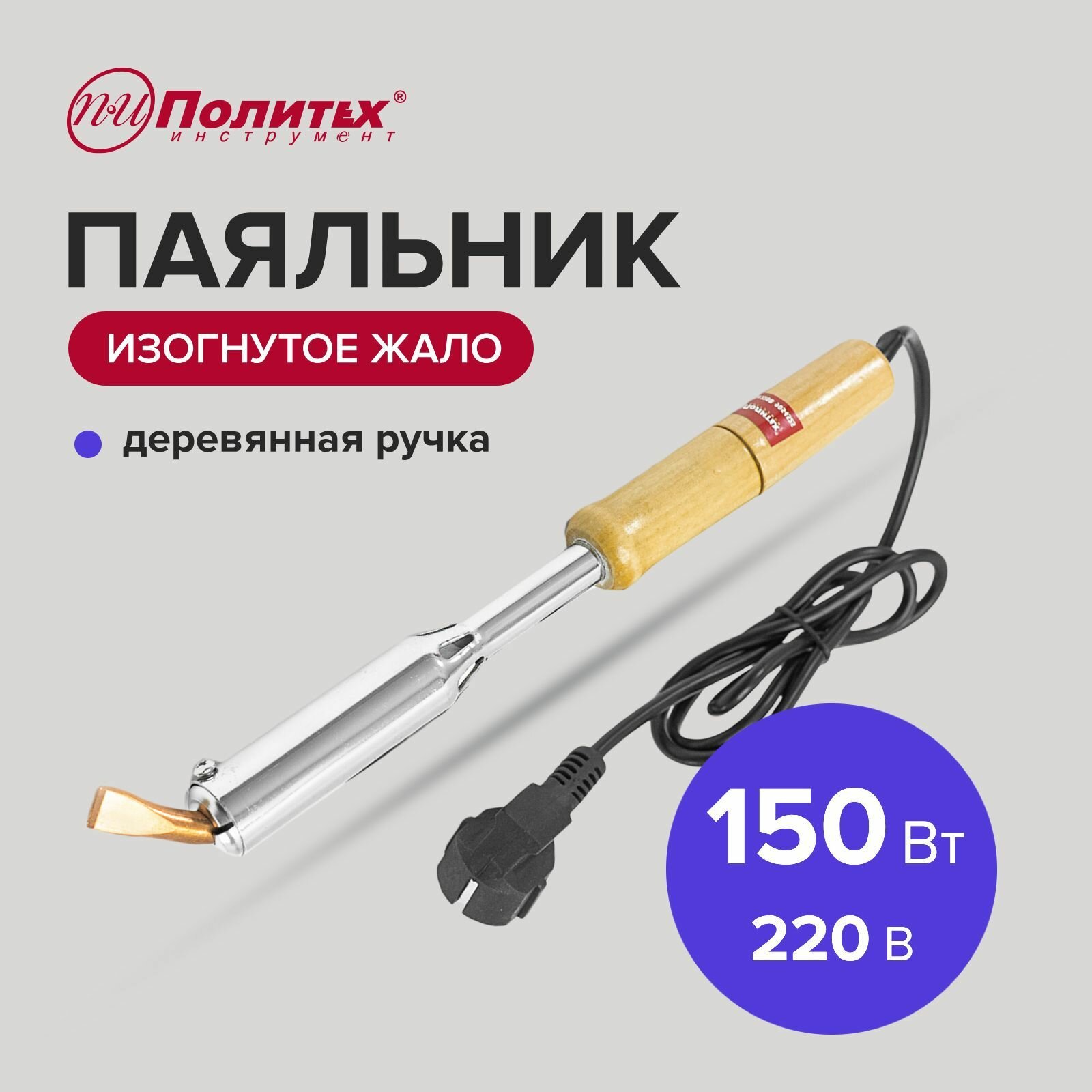 Купить Паяльник электрический с деревянной ручкой 150Вт 220В, Политех Инструмент