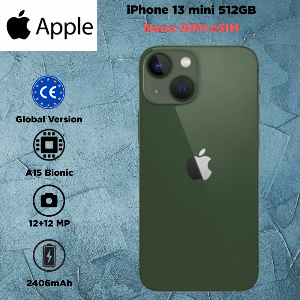 Купить Смартфон Apple iPhone 13 mini 512 ГБ, Dual: nano SIM + eSIM, Green (Зелёный)