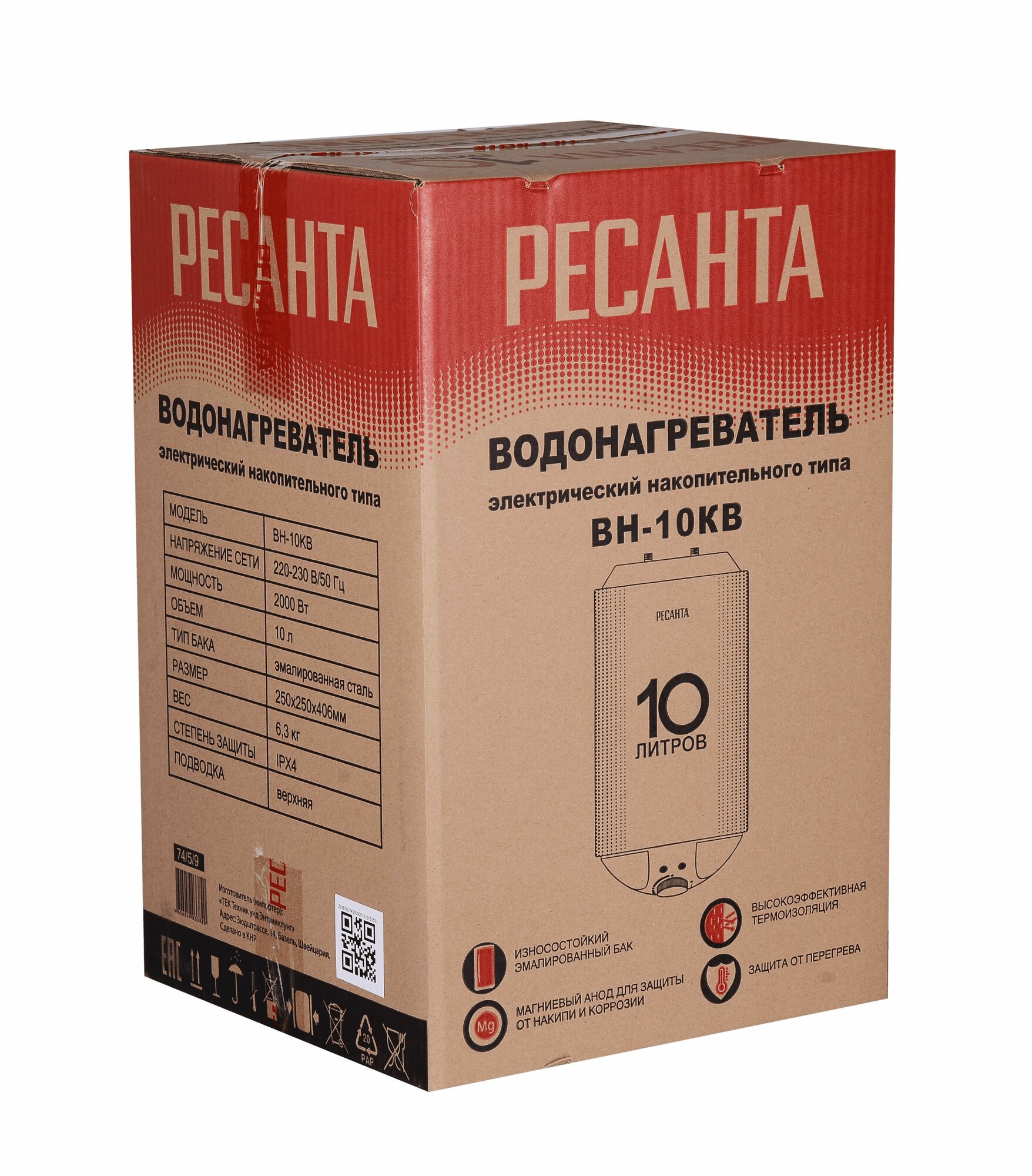 Водонагреватель накопительный ВН-10КВ | код 74/5/9 | Ресанта (1 шт.)