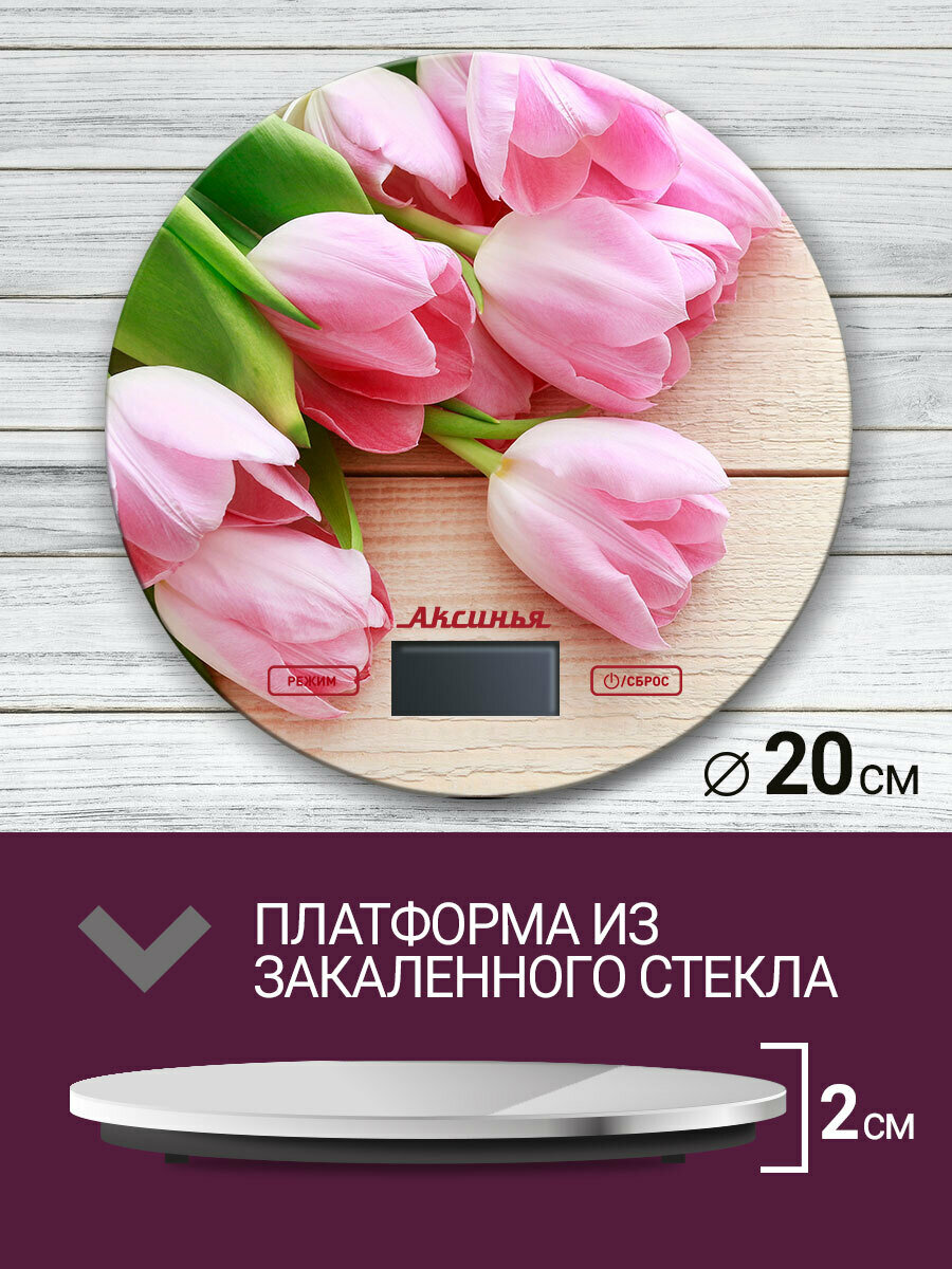 Весы настольные электронные Аксинья КС-6503 Розовые тюльпаны: 5 кг, стекло (24) КС-6503 .