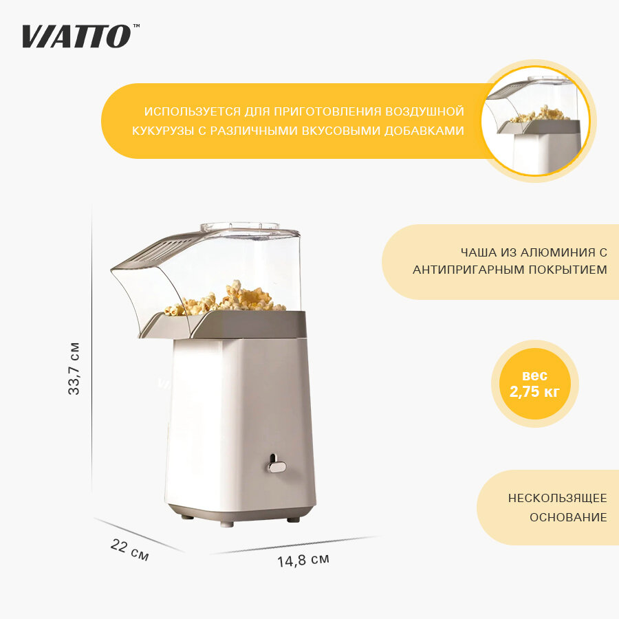 Аппарат для попкорна VIATTO VA-PM88Y / попкорница для дома / попкорн мейкер