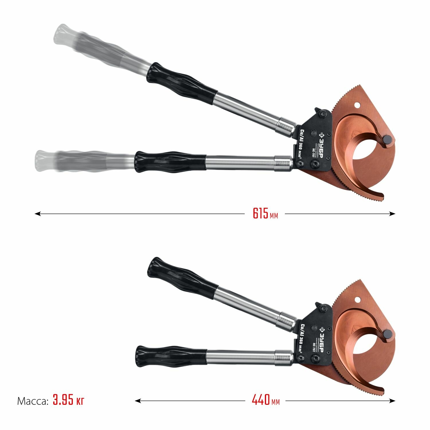Секторные ножницы ЗУБР НС-75T, твердость лезвий HRC 48-52, до d75мм, 450-620 мм "профессионал" 23352-75