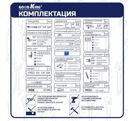 СохранитьНабор инструментов GOODKING, 172 предмета, трещотка 1/2", 1/4" 3/8" (B-10172) интересное: