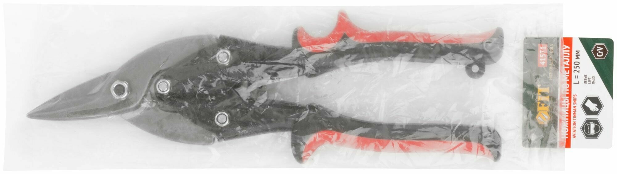 Купить FIT Ножницы по металлу 250 мм левые усиленные CrV для стали до 1,2 мм и нержавеющей стали до 0,8 мм, прорезиненные ручки
