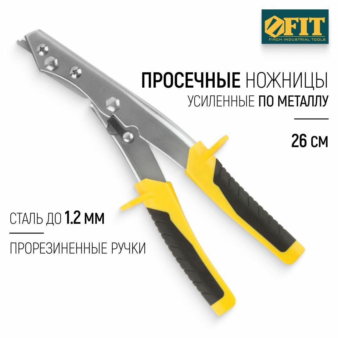 Купить Ножницы по металлу просечные, усиленные лезвия, Профи, прорезиненные ручки 260 мм FIT 41590