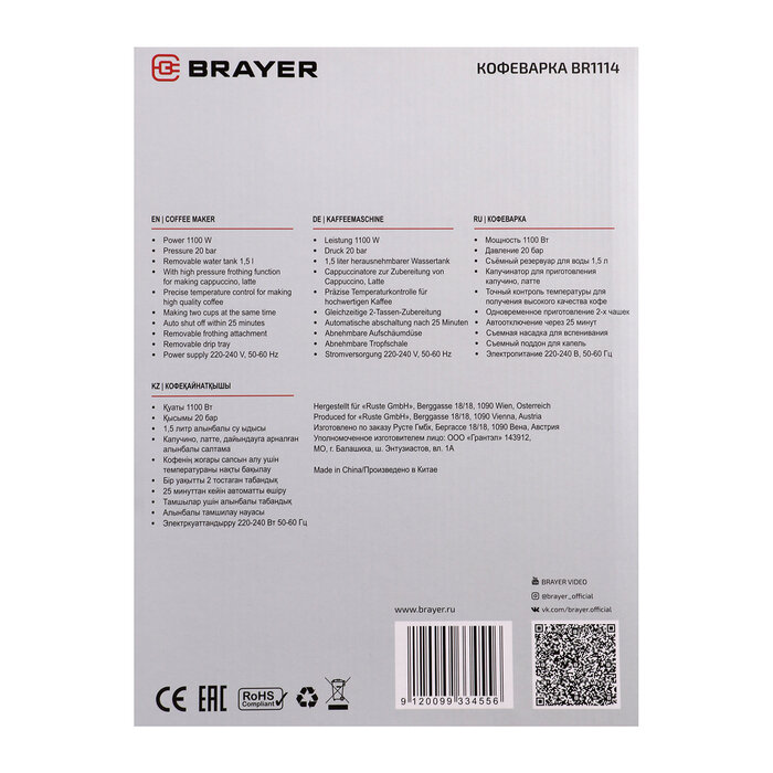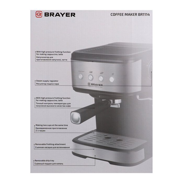 Ниже Вы можете прочитать отзывы на Рожковая кофеварка BRAYER BR1114, 1100 Вт, эспрессо, латте, капучино, серебристая/черная, ознакомится с подробными характеристиками, посмотреть интересные обзоры и фотографии на Рожковая кофеварка BRAYER BR1114, 1100 Вт, эспрессо, латте, капучино, серебристая/черная.