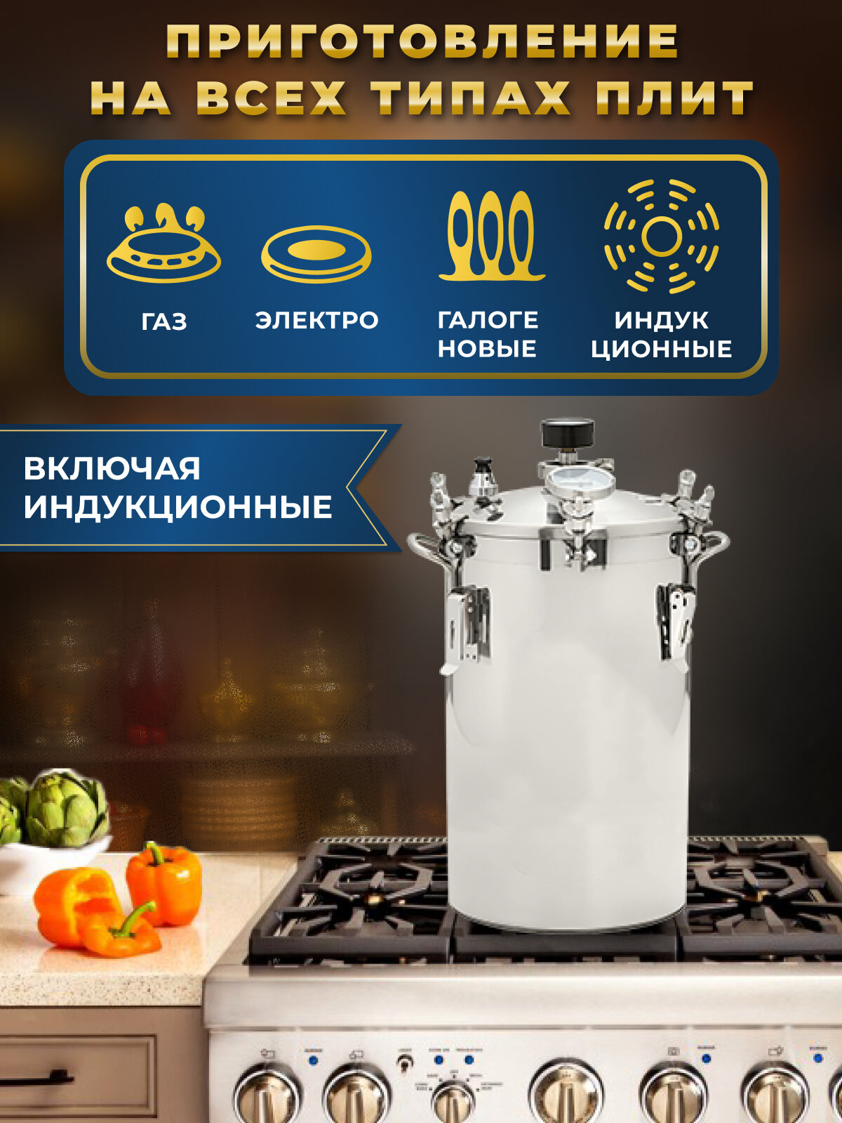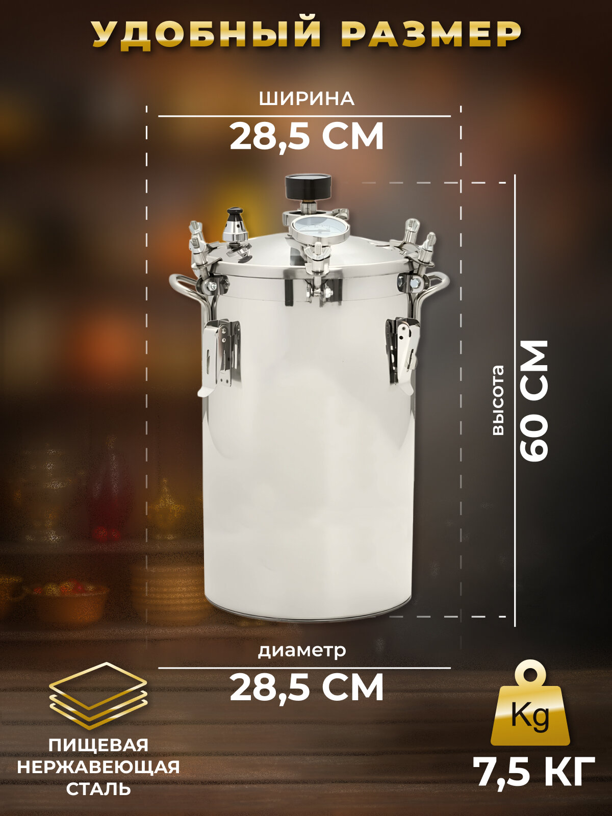 Автоклав Традиция 2 в 1 Классик из нержавеющей стали, 22 литров