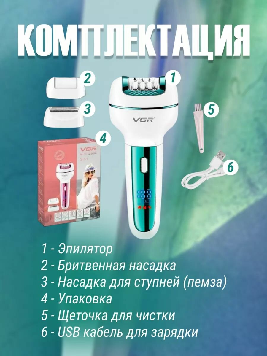 Женский эпилятор, бритва, пемза , депилятор VGR V-732 3в1