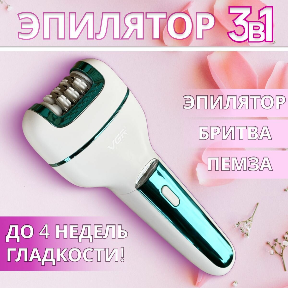Аккумуляторный эпилятор VGR 3 в1