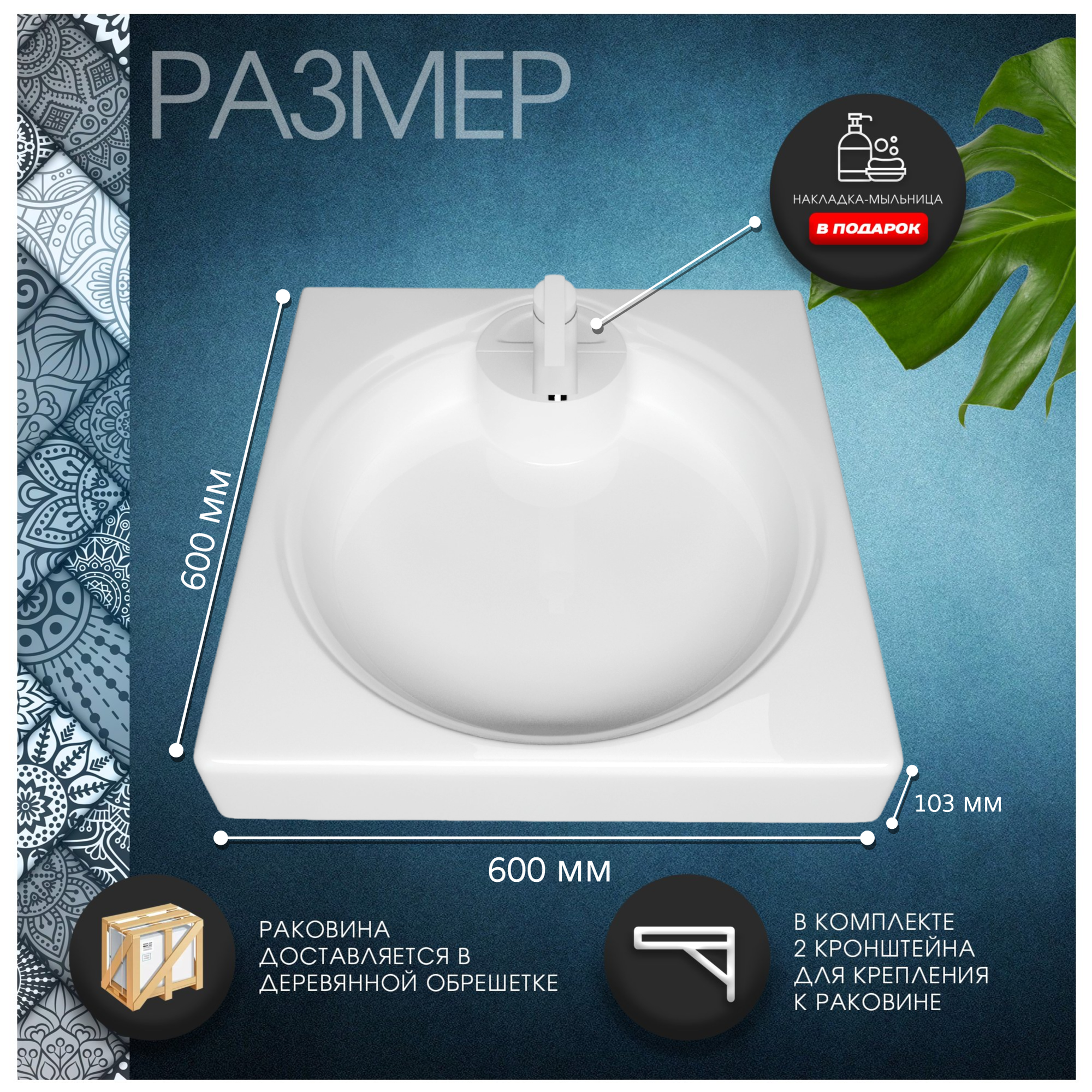 Раковина Амур 60 белая для ванной 600*600