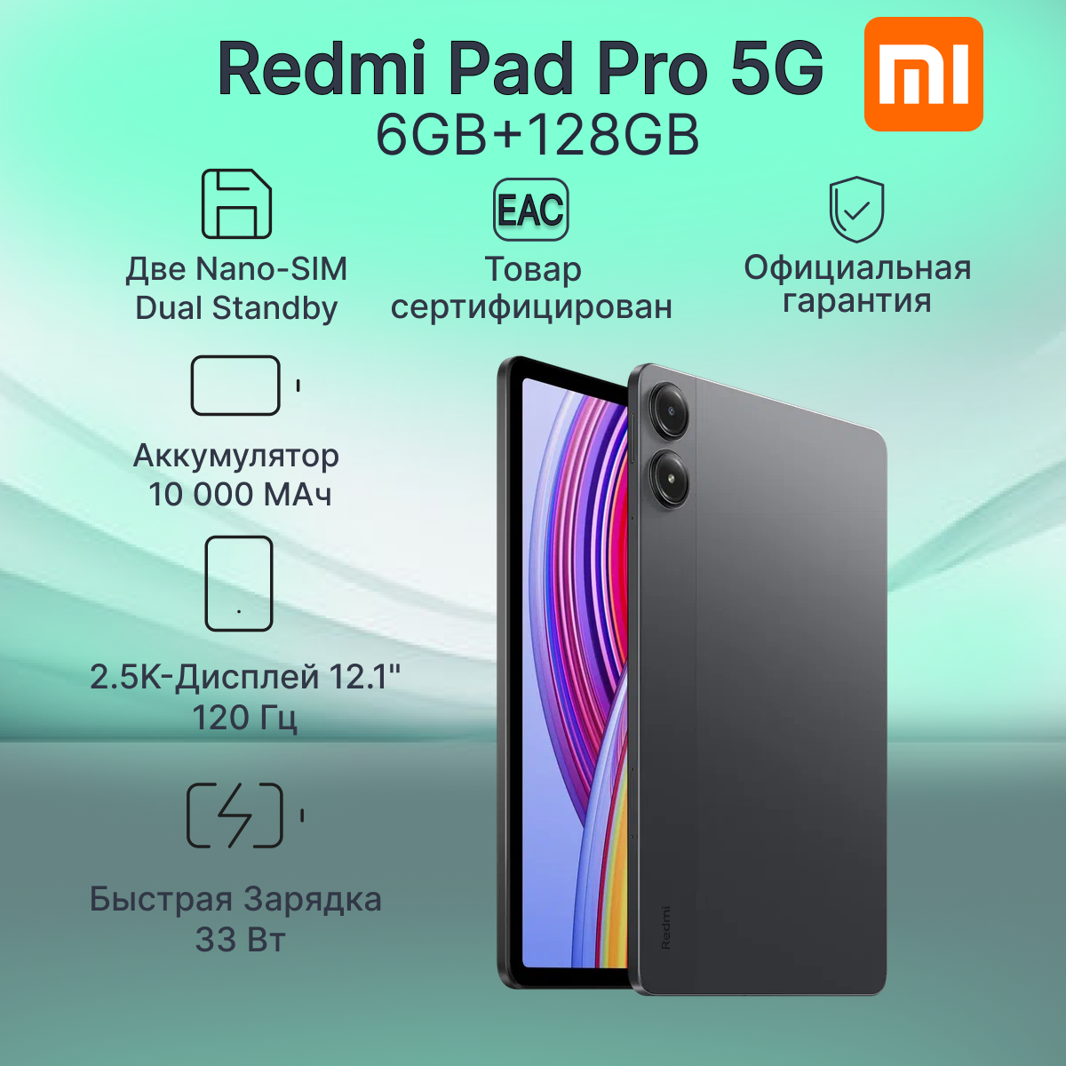 Планшет Xiaomi Redmi Pad Pro 6/128GB 5G+Wi-Fi Серый RU