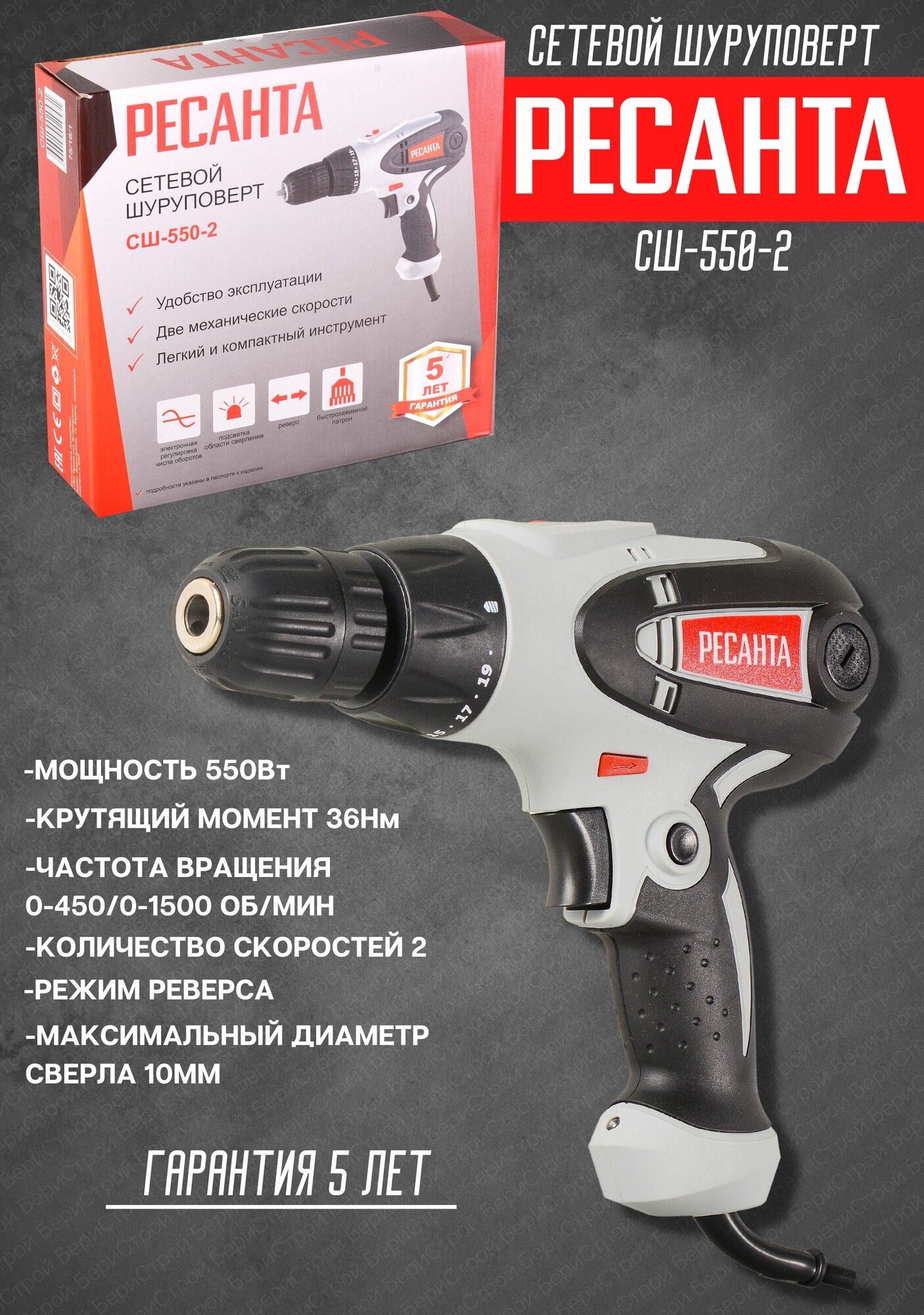 Шуруповерт сетевой 550 Вт Ресанта РЕСАНТА СШ-550-2 | цена за 1 шт интересное: