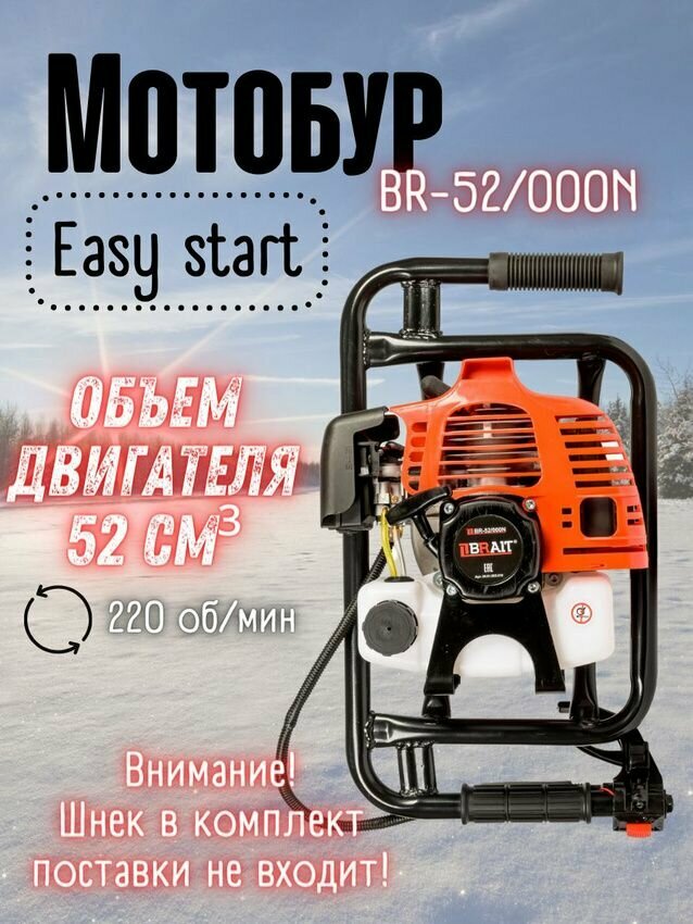 Мотобур Brait BR-52/000N без Шнека (Мощность 1500Вт, объём бака 0,8 л, 2-тактный, возд. охлаждения, 220 об/мин) Бензобур / ямобур / для бурения интересное: