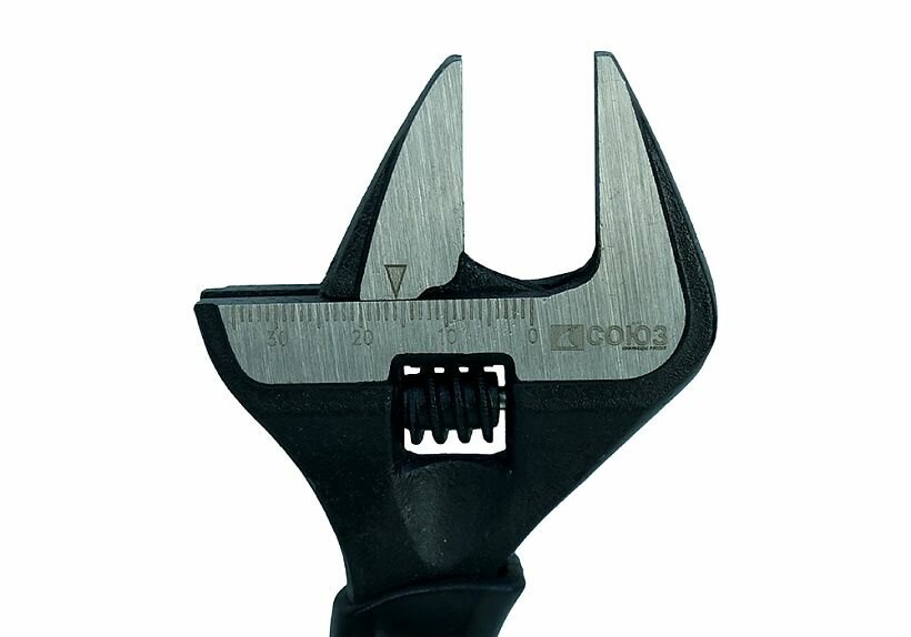 2. У подвижной губки на удивление маленький люфт , как продольный, так и горизонтальный (это когда из одной стороны на другую). Сравнивал с ключём 200 мм VIRA RAGE 311102, разница в точности подгонки огромная 3 Узкими губками удобней подораться к гайкам небольшого размера |