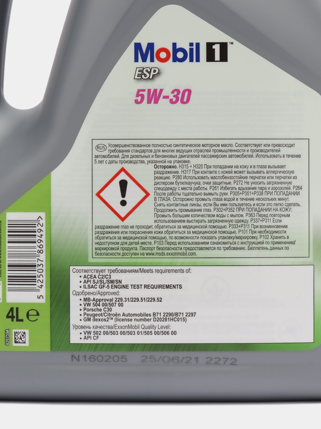 Mobil Mobil 1 Esp 5W30 (4L)_Масло Мотор.!Синтapi Sn,Acea C2/C3,Mb 229.31/51/52, Gm Dexos 2,Vw 504/507.00