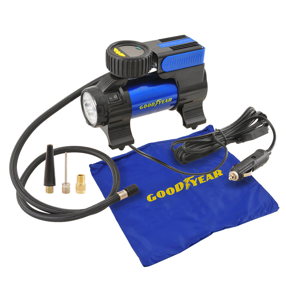 Воздушный компрессор GOODYEAR фонарём, со съемной ручкой, сумка для хранения