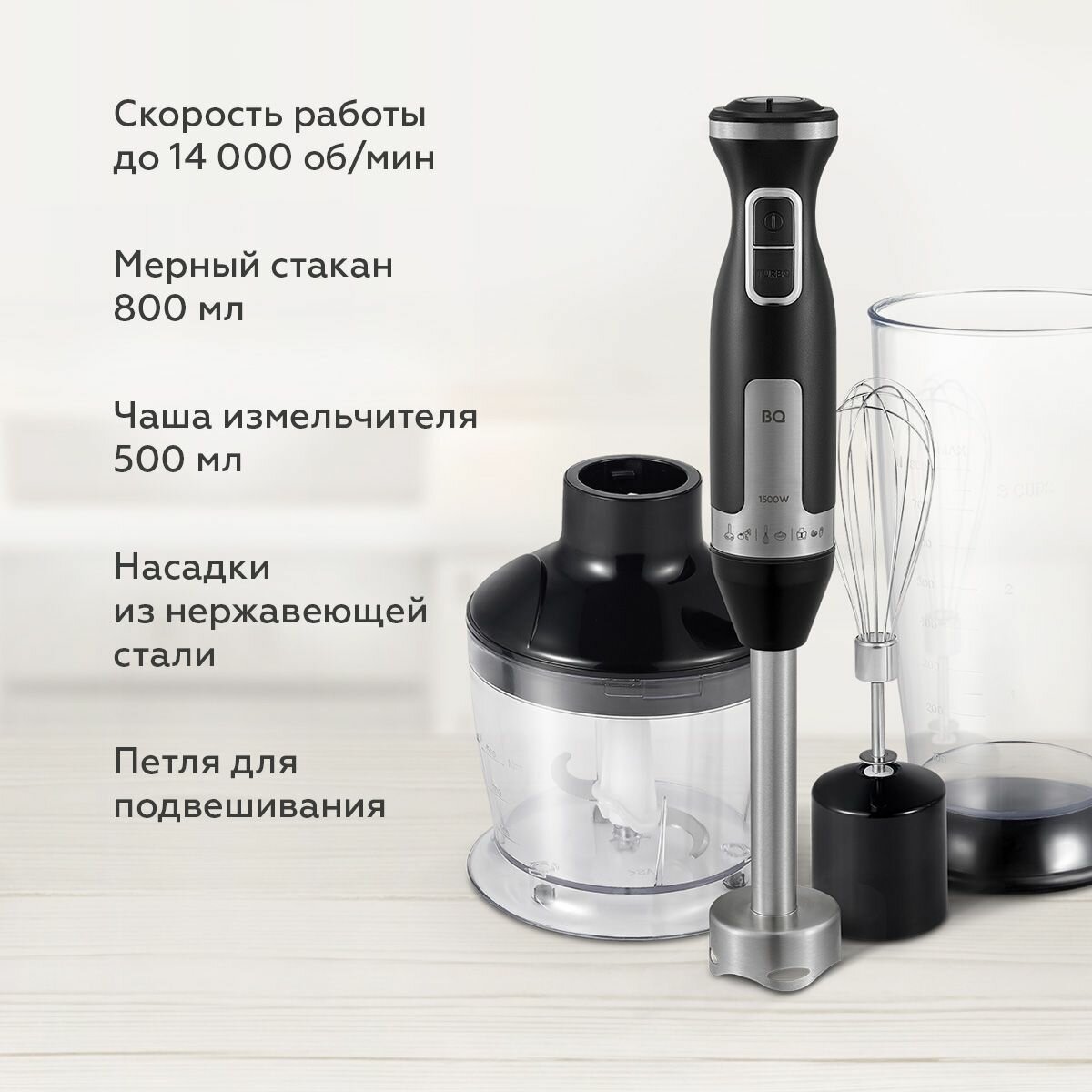 Блендер погружной BQ-HB420PS, 1500 Вт, чаша 500 мл, DC мотор, черный
