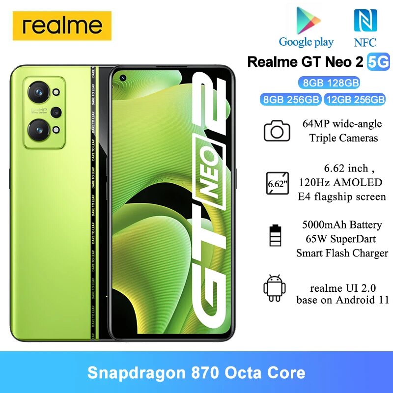 Смартфон Realme GT Neo 2, 6,62 дюйма, 64 мп, 5000 мАч, 65 Вт