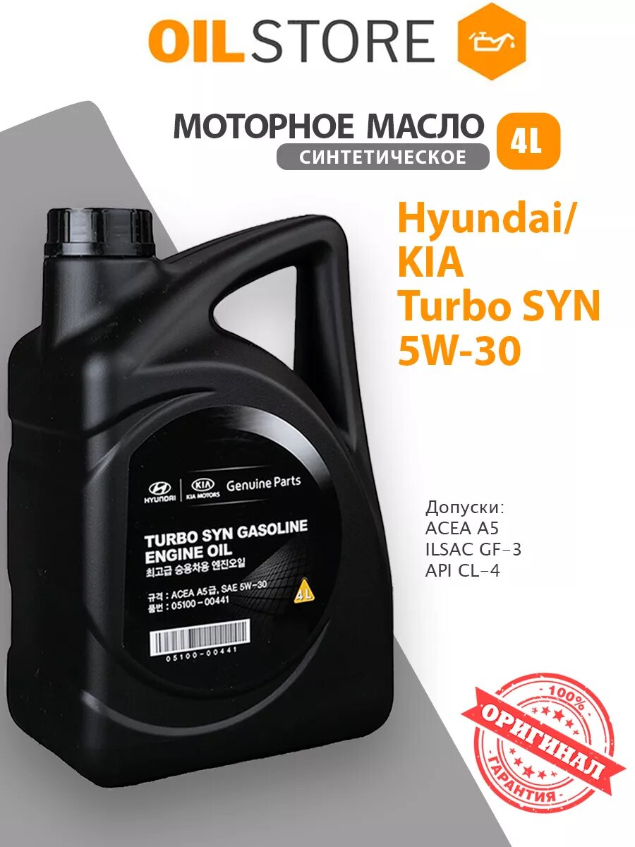 Моторное масло HYUNDAI/KIA Turbo SYN, 5W-30, 4л, синтетическое [05100-00441]