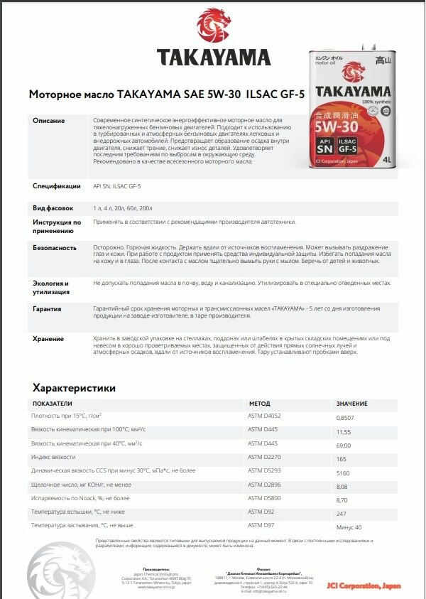 | Отзыв: | Третий раз заливаю масло Такаяма в свой автомобиль. Машина новая, поэтому синтетика тут в самый раз.