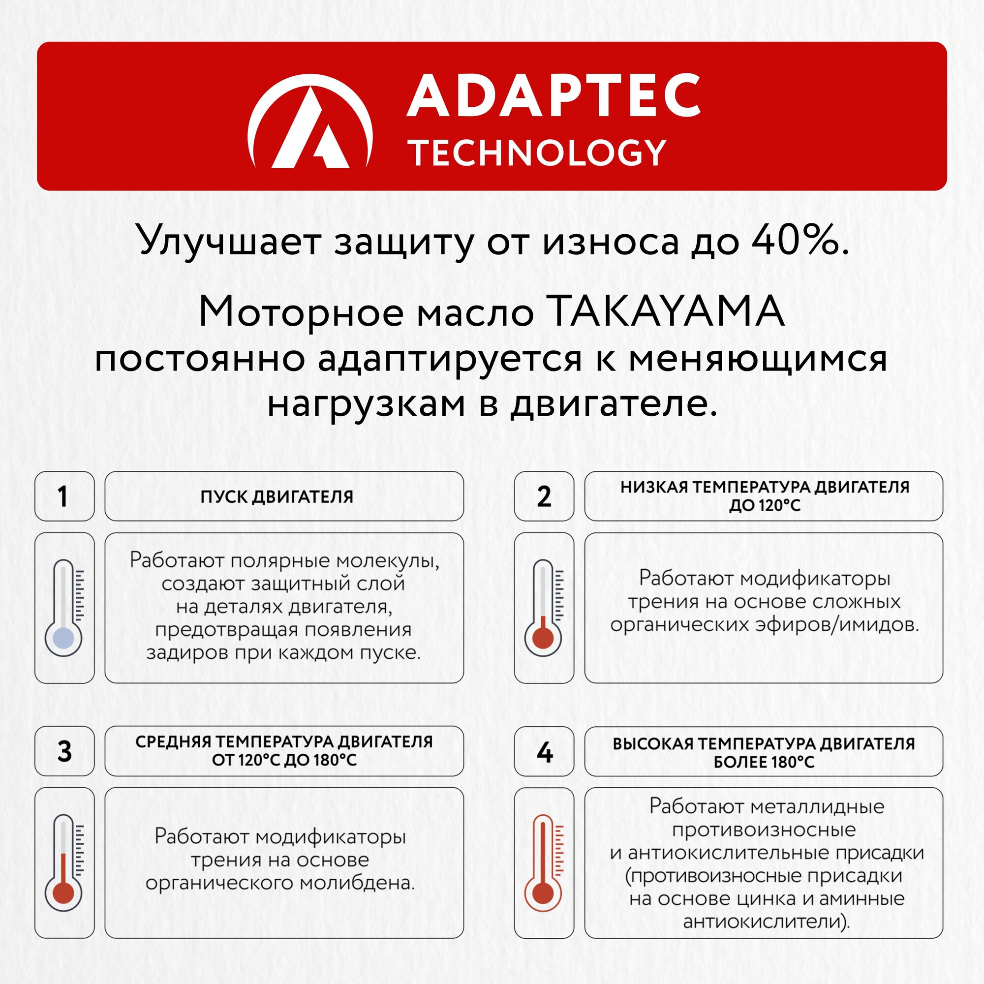 Акция 4+1 Моторное масло TAKAYAMA ADAPTEC SAE 5W-30, ILSAC GF-5, API SN Синтетическое 4 л