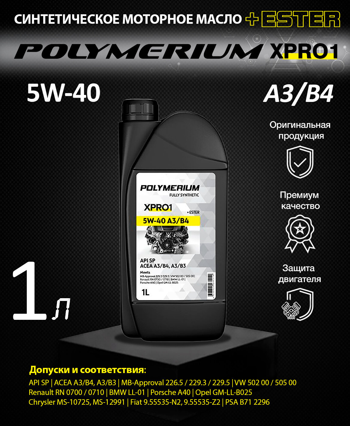 Купить POLYMERIUM Масло Моторное Polymerium Xpro1 5W40 A3/B4 1L 5W40 A3/B4 1L Fully Synthetic